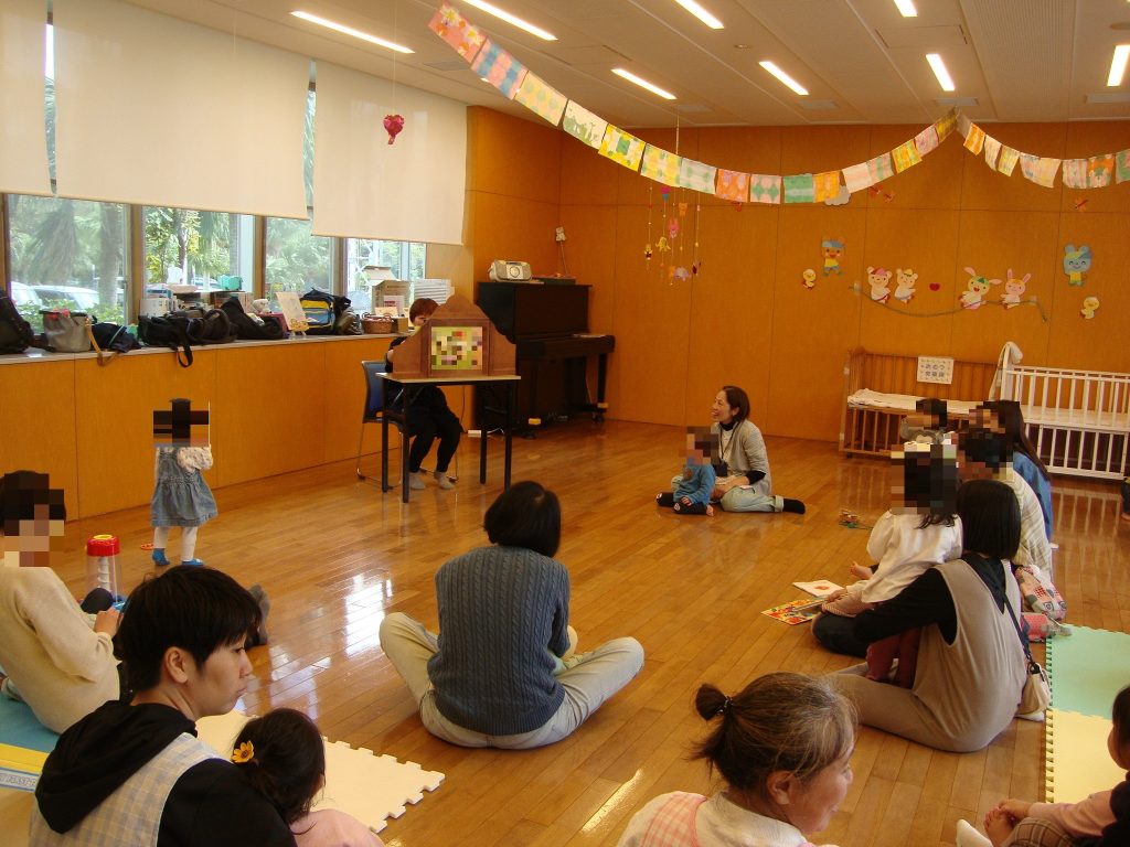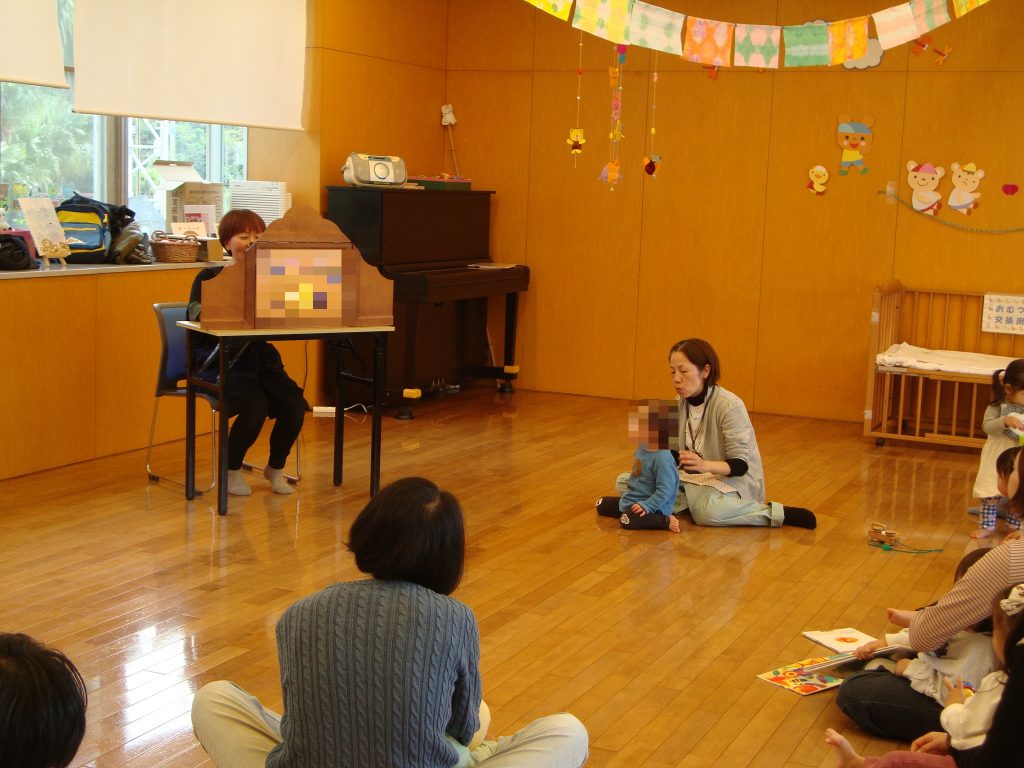 わらべうた絵本や、ハロウィンにちなんだ絵本のよみきかせをした後、