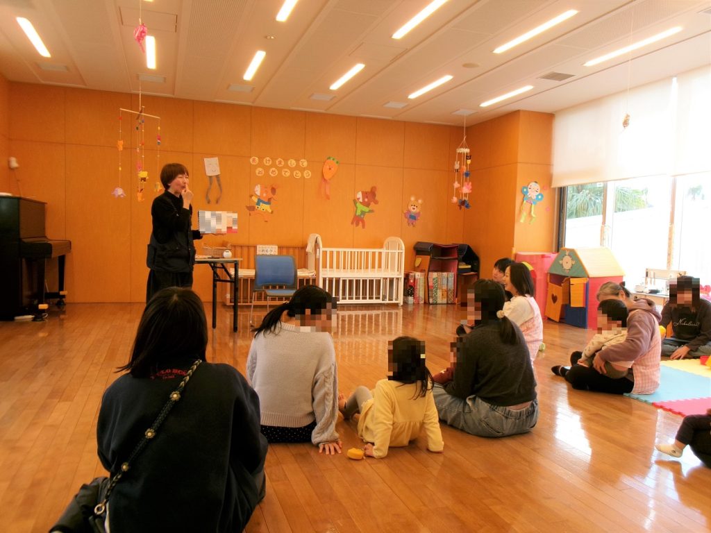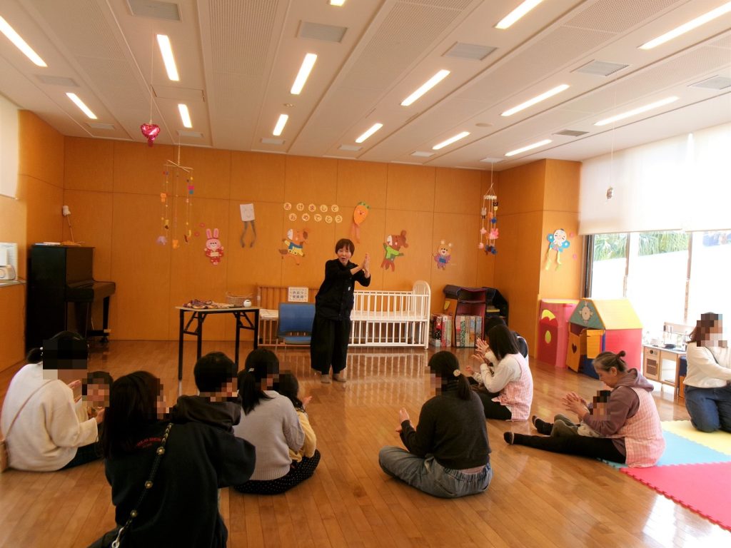 お正月の手遊びあり、紙芝居ありと