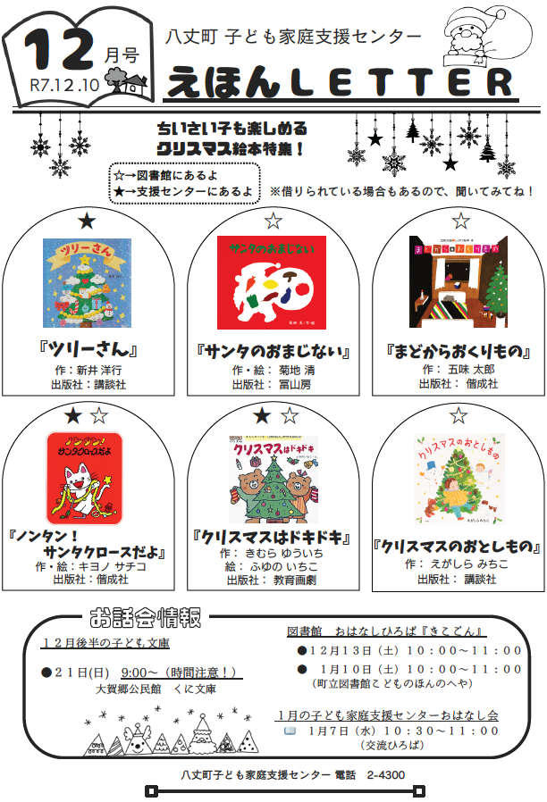 12月のおはなし会は、クリスマスにちなんだお話をよみきかせ。