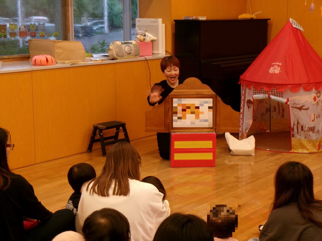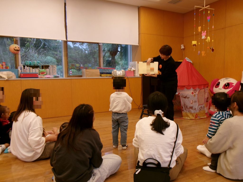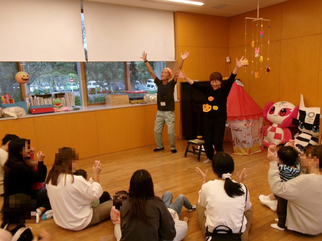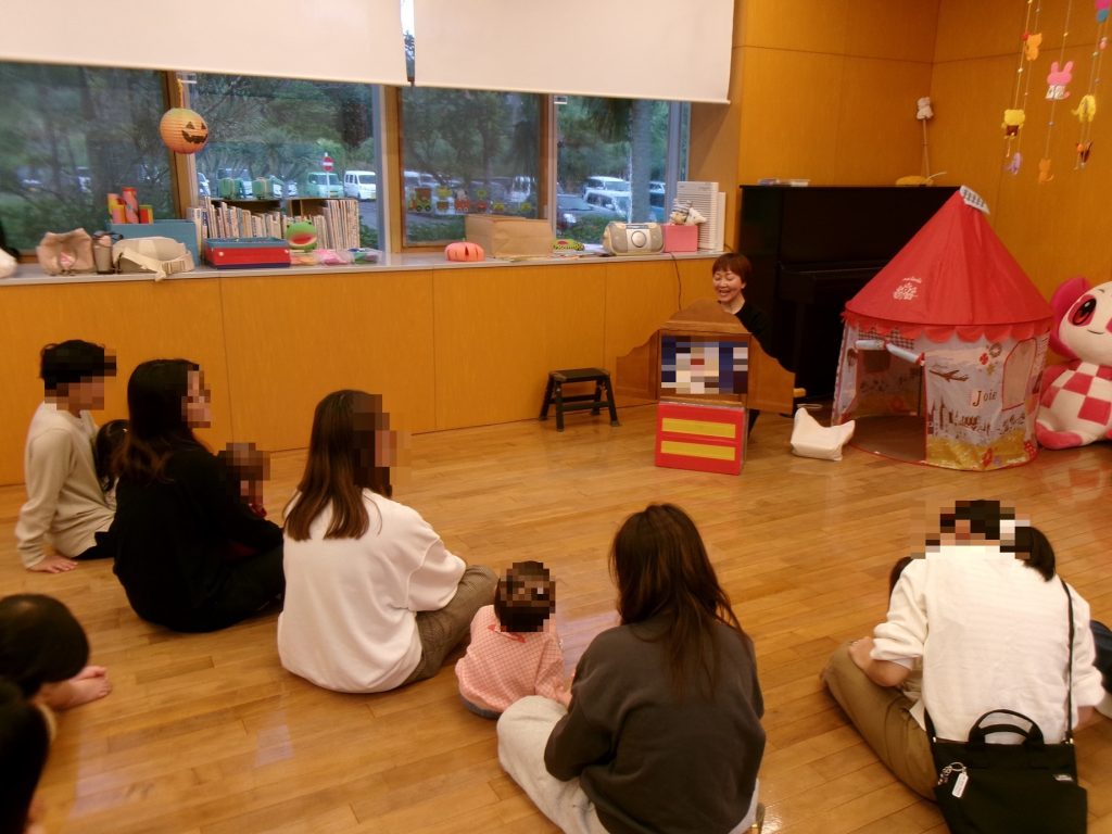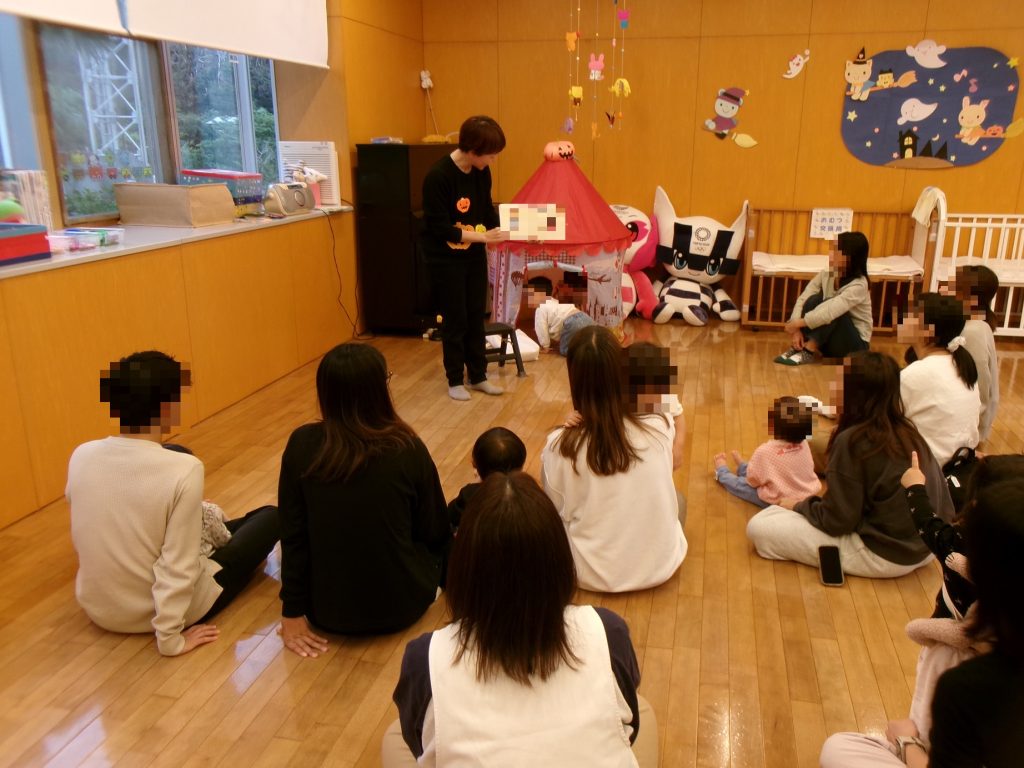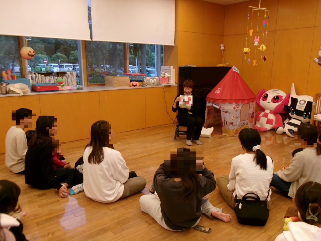 わらべうた絵本や、ハロウィンにちなんだ絵本のよみきかせをした後、